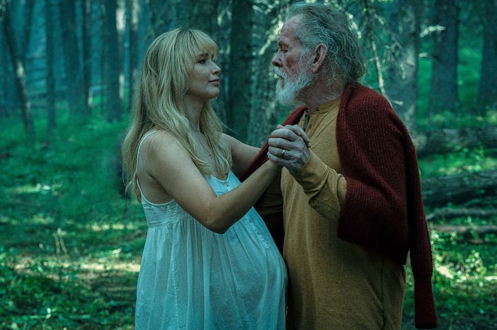 “With an aflame Lawrence in its crosshairs, it casts a nauseating, hypnotic spell, plumbing the power of its domestic imprisonment story to the deepest depths,” writes Rory Doherty, describing the tactility and immediacy of how the film feels in the body, in the mind. This muddiness serves the film by obscuring and in places confusing the specifics of it all: Jackson’s job, the strength of anyone’s tether to real life, the baby’s name for most of it, pointedly, and Grace’s state of mind, too. Ultimately, the lack of clarity in the film is not an inherent negative, but ends up being the unwelcome product of a disregard of what it feels like to feel how Grace is feeling – she is instead hollowed out in service of startling, even gratuitous gestures to her instability, held precariously, torturously away from safety and agency at every turn.